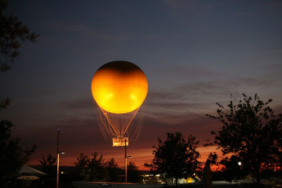 The Great Park Balloon sits upon the Great Park which is located in Irvine. Although the Great Park holds bike paths and sports fields, the Hot Air Balloon ride is the main attraction. Although closed Monday-Wednesday, it is open Thursday-Sunday on select hours. Going about 400 feet in the air, and fitting 25-30 people, the Great Park Balloon is a great experience to take on a sunny day.