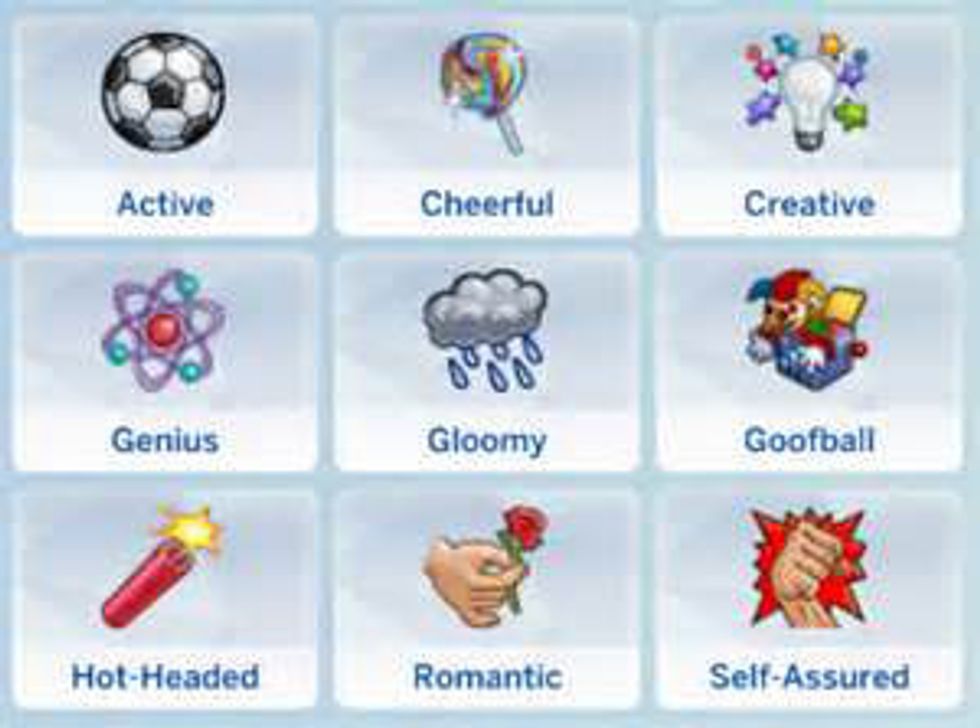 - these are just a few of many traits available to use when you create your sims. You can make them cheerful or hot headed, childish or family oriented, you can even make them insane!