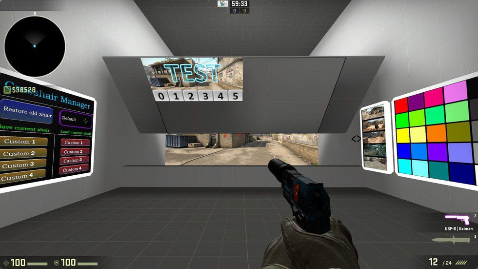 In a first person shooter you generally want to know where you are aiming, Counter Strike: Global Offensive is no different in this regard. This is where your crosshair comes into play. The crosshair is the little plus sign looking thing in the middle of your screen that lets you know if you are going to hit someone or not. In CS there are countless ways to customize your crosshair and almost everyone's is a little different from the next guy's. There is a happy medium between very visible and invisible though and that's where you need to be. You want to be able to see where you are shooting and be able to see what you are shooting without a big bulky plus sign in your way. The easiest way to adjust your crosshair is to download Crashz' Crosshair Generator. In this map you can test out multiple settings with ease until you find out what works for you.