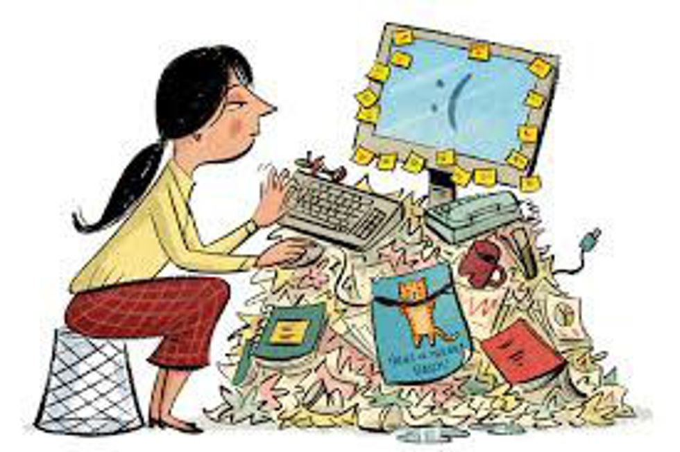 A fantastic tool to reference when someone asks if you are available is a calendar where you write down all commitments you have. Using a daily planner to write down any assignments announced in class will ensure that you never forget to complete some homework and lose points needlessly. Have a file folder for all of your important documents such as syllabi, government forms, and receipts. Have a whiteboard to write down all of the tasks you have to complete during the week. Have a bulletin board to pin up schedules, flyers, or inspirational quotes. All of these are organizational tactics that have proved useful in my everyday life. Maybe you have different strategies; that is perfectly fine. Use whatever works best for you! Just try not be the lady in the picture above.
