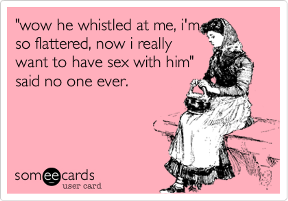 Whenever a man catcalls a woman, it's almost as if I can hear them yelling, "My ***** is microscopic and I never get laid so I use this method to cover up my low self-esteem!"