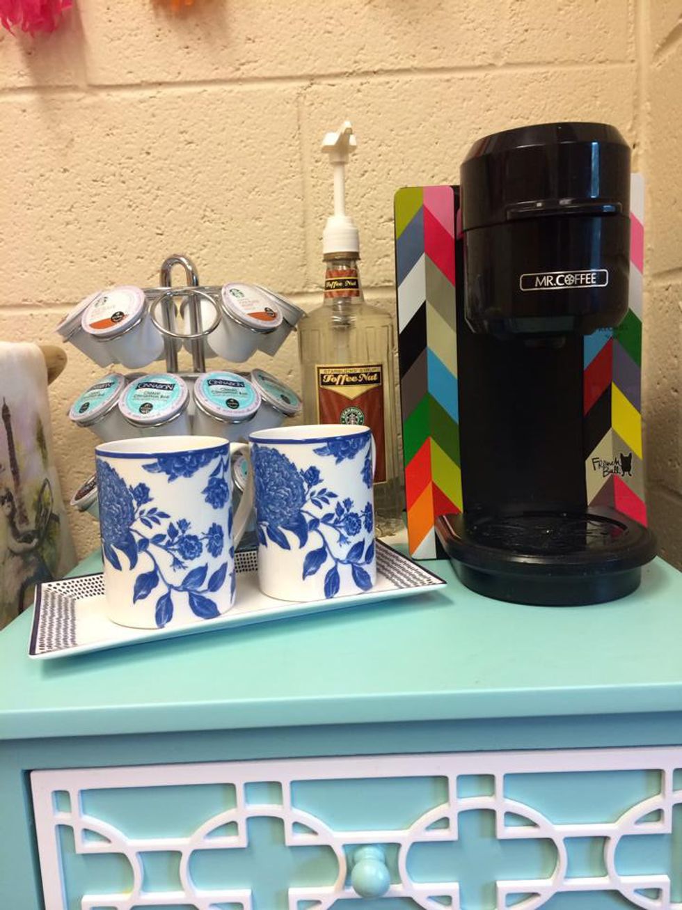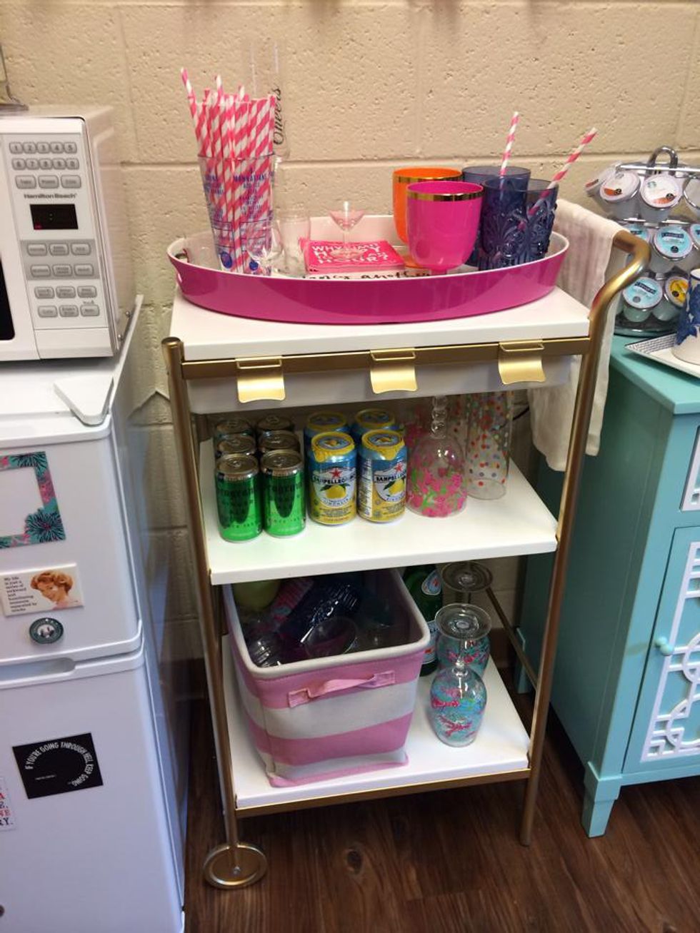 Ignore the name, a bar cart doesn’t always have to be alcoholic. Instead think of it as a way to display the hundreds of cups (not an exaggeration) that have taken up residence in your dorm room. Other filler items could be decorative napkins, cans of sparkling water or soda, or even bins to hold your endless koozie collection (guilty as charged). For all my fellow coffee lovers out there, turn your bar cart into a coffee bar complete with a Keurig, K-Cup holder, flavored syrup, and coffee mugs. Brewing your morning cup of Joe will never be the same again!
