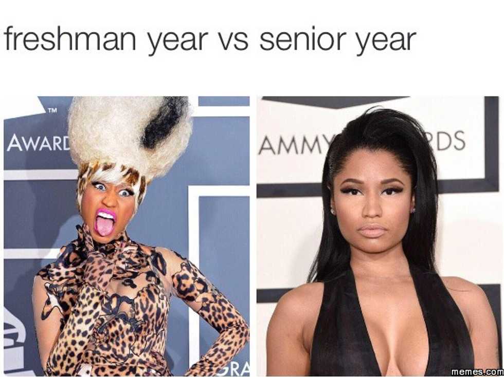 Freshman year, you come into school wondering what you want to do with the rest of your life. Even if you have a major decided, you have time to change it. By senior year, you hopefully have selected a major and also have picked what you want to specifically work on in that major. It’s exciting to figure that out by senior year, but also very scary. By senior year you’ll be so excited to be in the real world, but you probably also won’t want to think about it much because it also gives you a heart attack. You’ll survive it though.