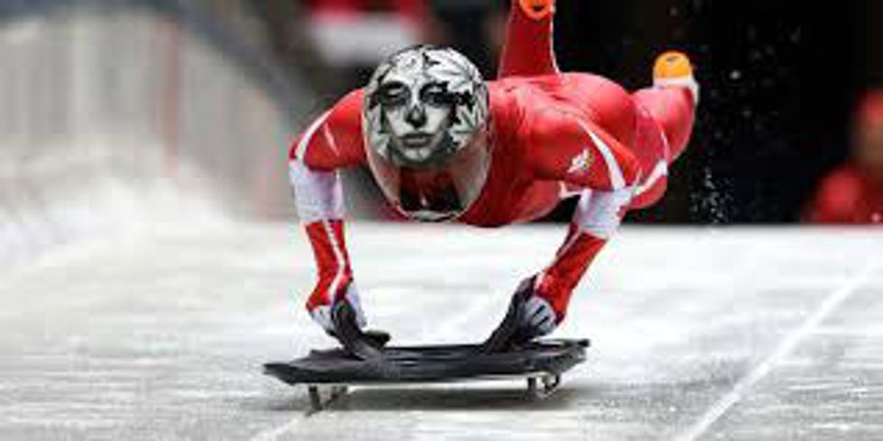 Similar to luge, athletes lie head first on sleds that use the same track as luge and bobsleigh races.