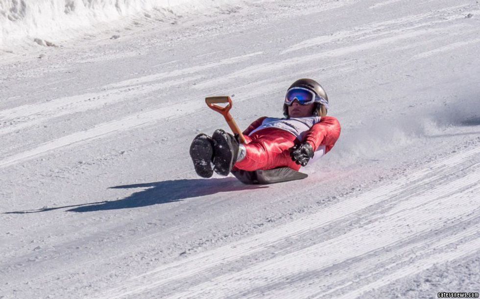 Similar to snow kayaking, athletes ride down the slopes on a shovel. The sport started when ski lift operators began sliding down on shovels instead of the lifts at the end of the day.