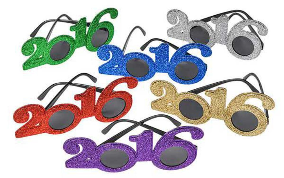 Not only do you look like a total tool wearing sunglasses INSIDE, ya know, at night, but there's also the small fact that these useless pieces of face decor actually hinder you from watching the fireworks. You know, the biggest and bestest New Years tradition of all. Not to mention the fact that by the end of the night your face and torso with be so covered with glitter, you'll look like you got mugged by Tinkerbell. Or an eight-year-old.