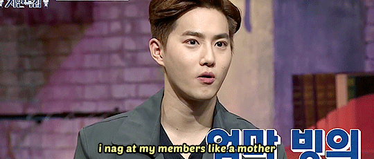 He is also referred to as the 'mom' of the group, with Kris being the dad. However, Kris left and now Suho is a single mom with too many children to take care of. Poor Suho. What a stressful job it must be dealing with his dumb children.