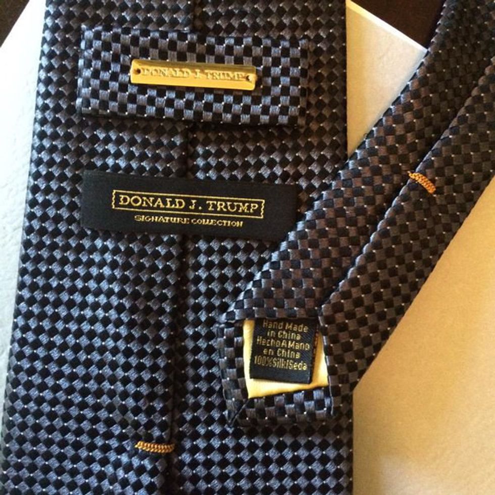 This tie, made in China, is visual evidence of Trump's hypocrisy when it comes to sending jobs overseas. For someone who is so against China, you'd think he would have picked a sweatshop in Thailand or something.