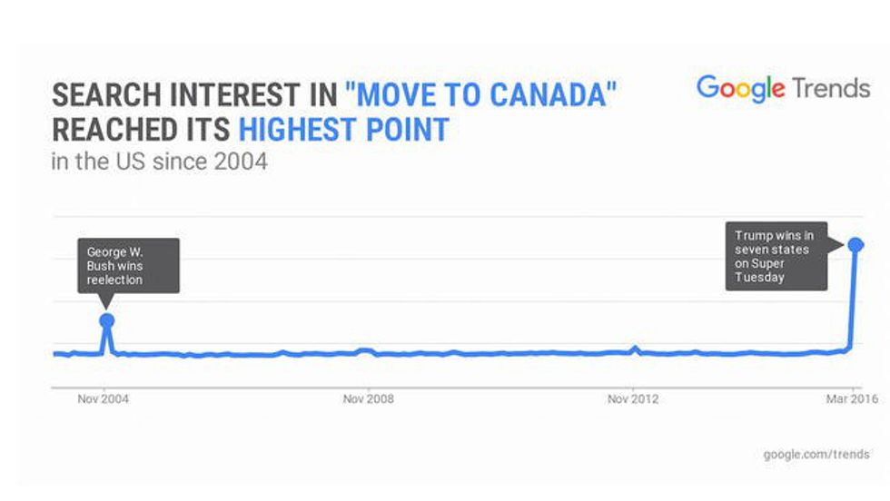 28. During his campaign, Google searches for how to move to Canada have dramatically risen in the US.