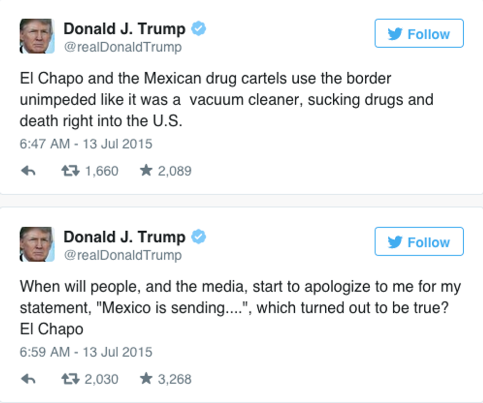 He seems to think that Mexico is exporting criminals to the US, when in reality they are bringing in millions of dollars in jobs, profits, and businesses. Many of his clothing collections are even made in Mexico. How does he plan to sell his ties when that border wall goes up?