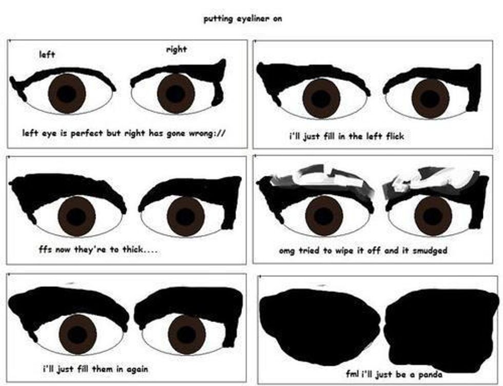 - Do my eyeliner perfectly on one side and always mess up the other eye