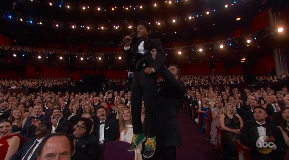 26. Jimmy Kimmel is lifting Sunny Pawar like The Lion King. Sunny is so cute. I am in love.