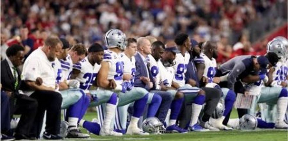 Trump's newest nonsensical rant is directed toward football players who choose kneel during the national anthem. Trump, in regular, unprofessional fashion, called the peacefully protesting football players 'sons of bitches,' and said they should be fired for their choice to kneel. While Trump is allowed to have whatever opinion he wants, it's indisputably dangerous for a president of a democratic society to openly condemn peaceful protest. I mean, if we don't have the choice to kneel during the anthem, are we really the land of the free? Furthermore, if no one has the nerve to question and protest America's issues, are we really the land of the brave? Making standing during the anthem or saying the pledge of allegiance compulsory would be more fascist than republican. JFK, one of the most highly regarded presidents in American history said it himself: "Those who make peaceful revolution impossible will make violent revolution inevitable."