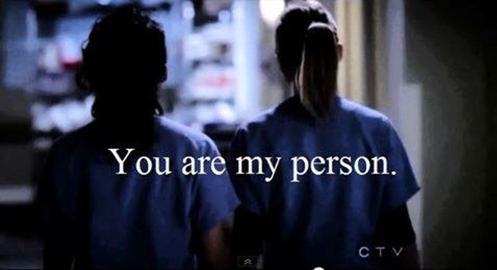 This is an ode to everyone without a Person™, this is for you. The Grey's Anatomy reference depicts a close relationship between characters Meredith Grey and Christina Wang. It's familiar among every pair of close friends, the concept of having that person no matter what. This relationship pervades beyond romance and even sometimes family. It's meant to be the epitome of platonic love between two people.