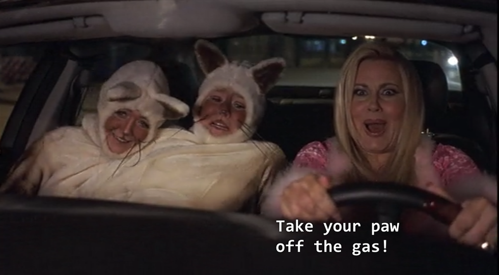 34. One of the cat twins illegally stepping on the gas while Fiona is driving, in order to catch Sam before she gets back to the diner, is super dangerous, and almost kills everyone on the road