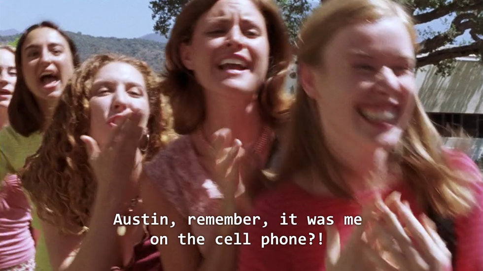 42. At one point, the evil twins get in a fight in Austin’s father’s carwash, and Austin hears their screams yet completely ignores it