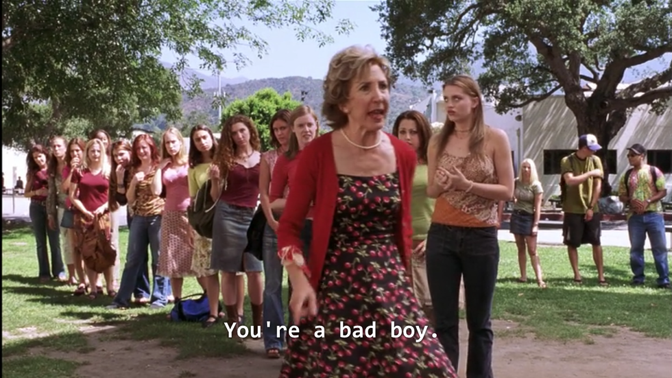 45. The cheerleaders’ put on a play exposing Sam is Cinderella, and essentially bully her to the point where she runs away crying, at the school pep rally. How did no teachers shut this down?!