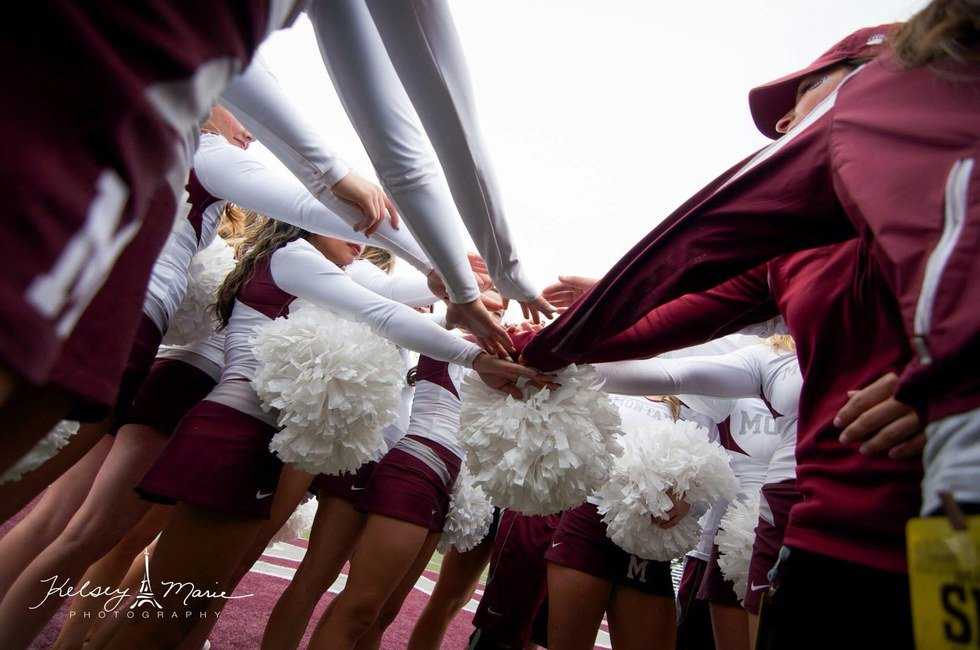 Cheerleading consumes all of your time. Our tryouts happen in April, and it is nonstop work until the end of March. We practice all summer long to be ready for Football Season in the Fall. Throughout the school year, we cheer at every home football, volleyball, men’s basketball, and women’s basketball game. Somehow in between juggling all of these sporting events, we find time to practice just as much, if not more than every other sport. Not to mention that we also have required lifting in the athletic weight room, just like all of the other sports.