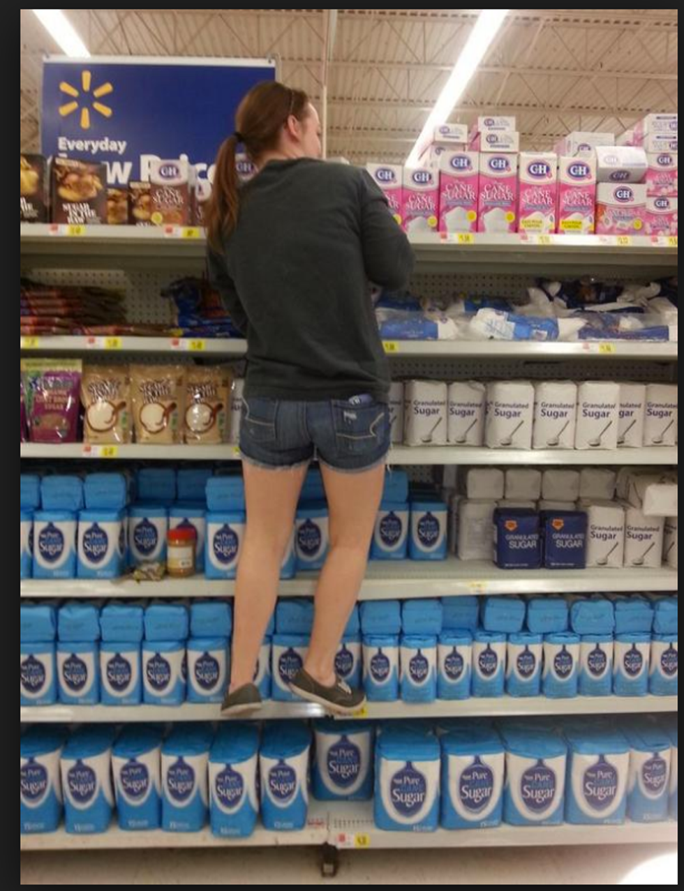 For some reason everything we enjoy at the grocery store is on the top shelf. We end up climbing onto shelves and jumping to get that delicious tasty treat we want. People often stare and laugh at our struggle, but we do not care. We are just proud we found a way to get the thing we wanted/needed ourself.