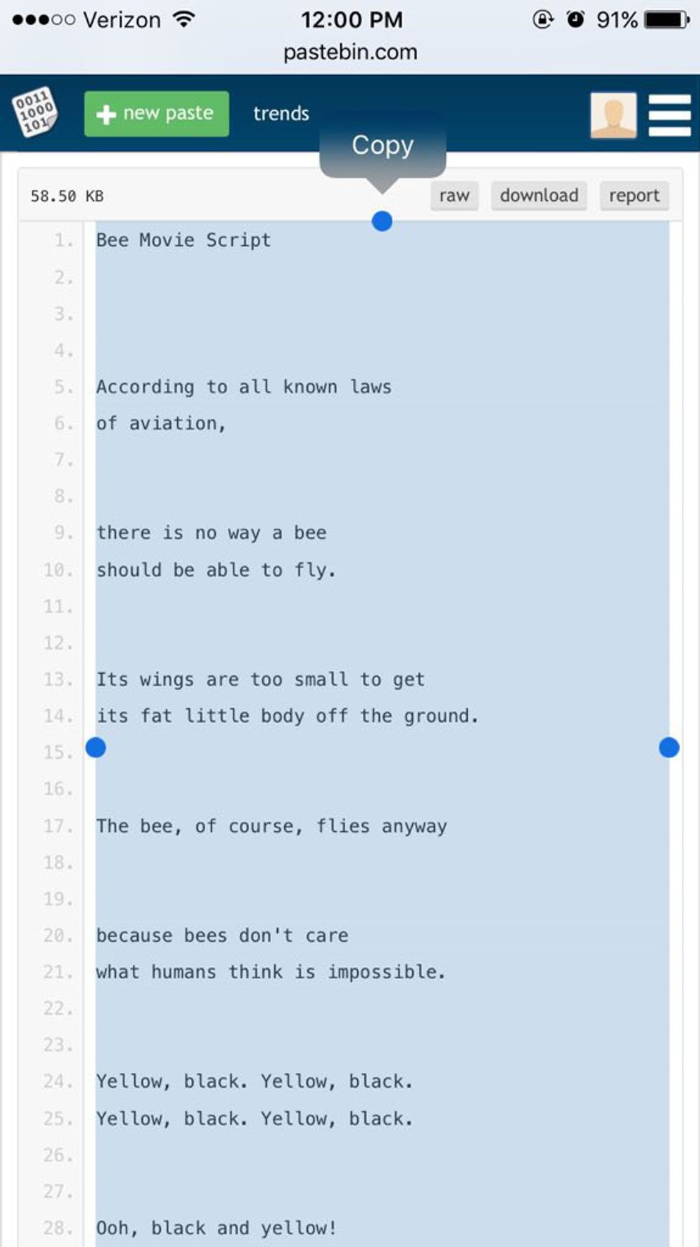 If the lyrics to one measly song aren't enough for you, how about just post the entire script for your fave movie? This one may have to be broken up into a few tweets, but this shouldn't bother you if you actually feel like doing this, considering the fact that you obviously don’t care if you’re annoying people. I saw a tweet that urged others to tweet the entire script of the "Bee Movie" that literally made me LOL. It would only take six tweets to cover the whole thing, so that’s not too annoying, right? Wrong.