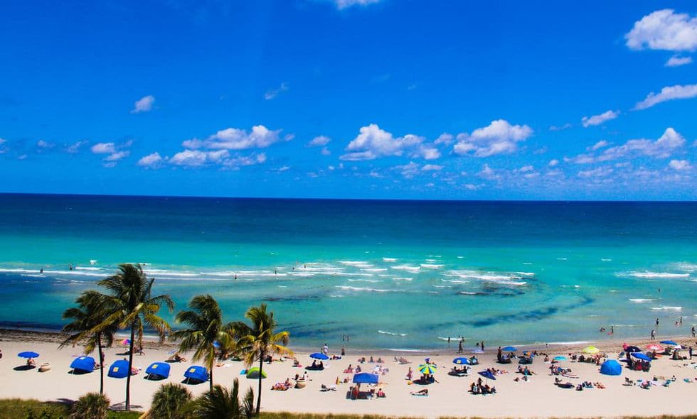 Hollywood Beach is right next to South Beach. Hollywood Beach is much less crowded than South Beach, but they're both about the same. Hollywood Beach is more of a family-oriented beach, rather than South Beach.