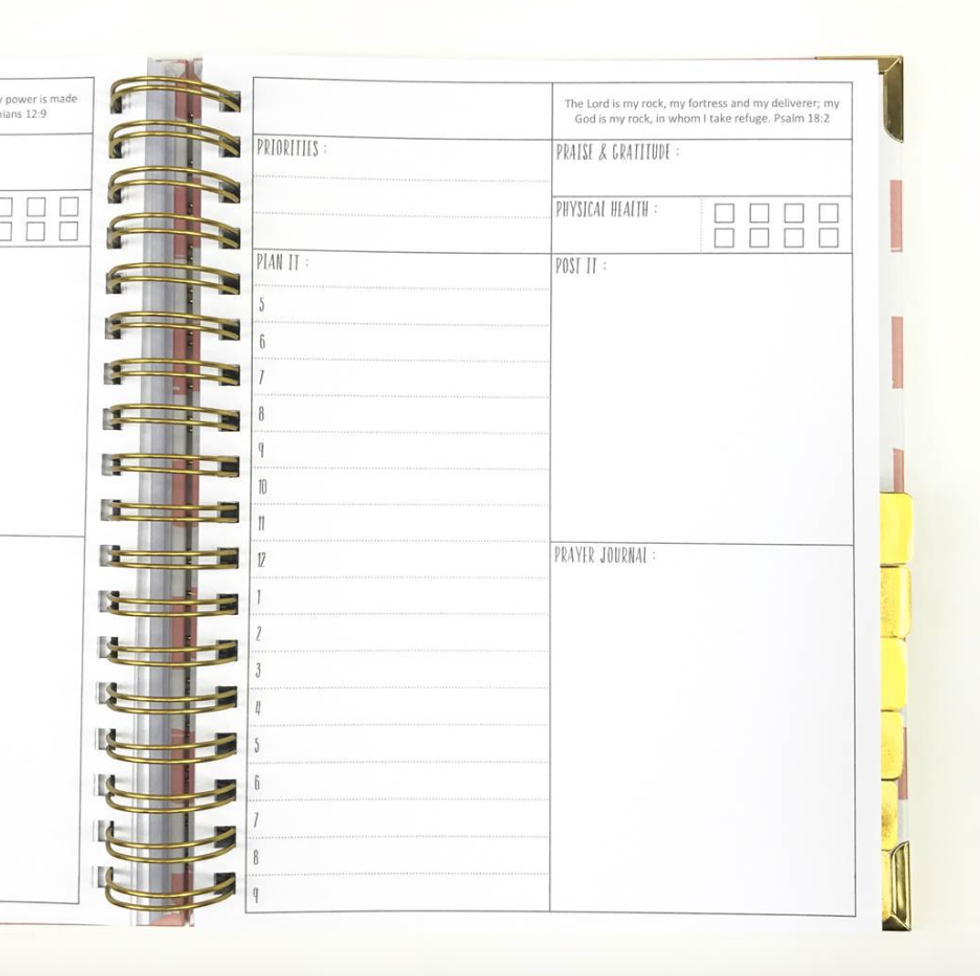 This planner is one that is helpful for everyone. Teachers, students, parents – everyone. The weekly spread is set up by the times rather then just a space to write. For example, you can write next to 7:30 a.m. "Spin class." This helps people plan out their days to the half an hour, rather than just writing down what you want to do that day. It also has a page that lets you reflect over your past week.