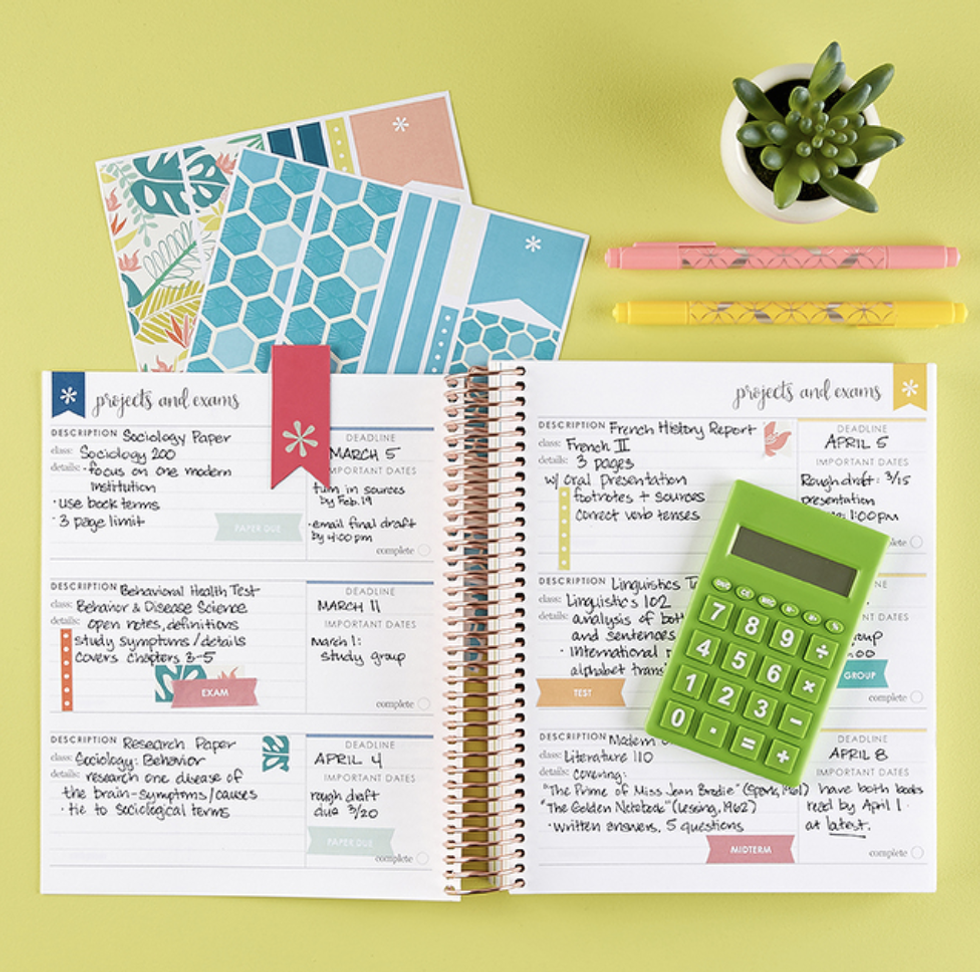 This one is specifically for students. The first few pages help with keeping any projects and exams you have organized. It also has some pages that you can write notes in in case you forgot your notebook. This planner has everything a student would need, including stickers to remind you of important things such as tests or study groups.