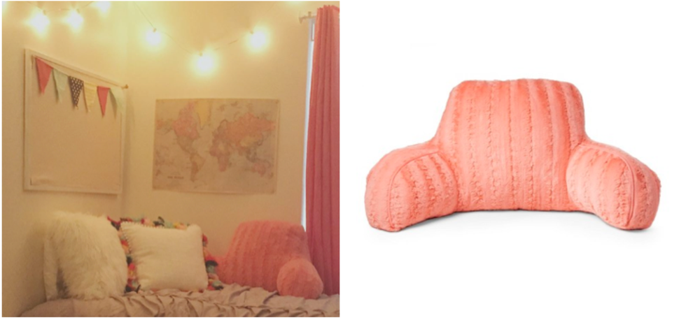 I bought this pillow for college, and I was not expecting to love it so much. I just lay it against my pillow, hop up in my bed, and I’m good to go for doing homework or working on my laptop—no typical back pain from sitting up in bed whatsoever. It’s perfect!