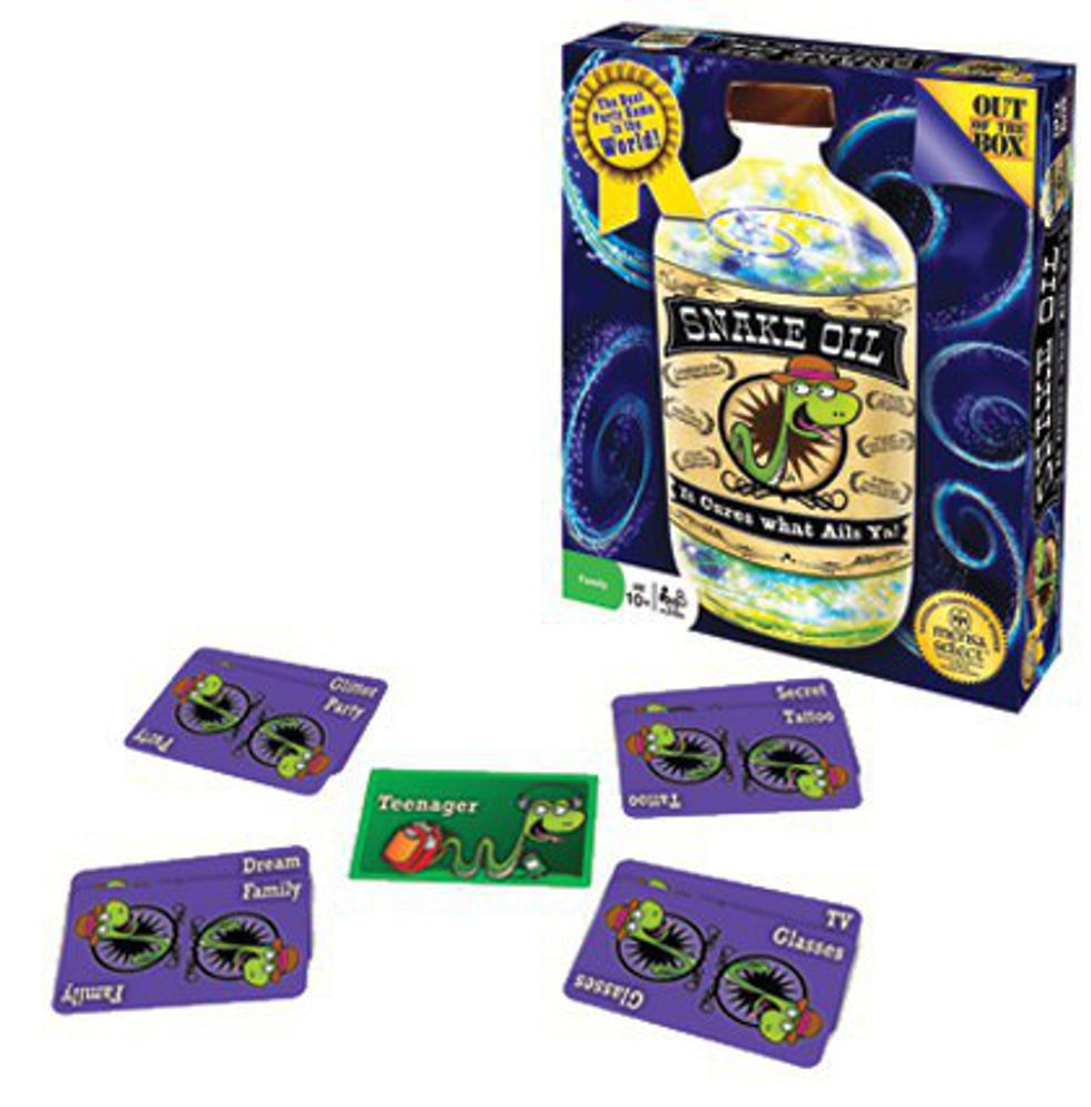 Snake Oil is similar to Cards Against Humanity, based on the fact that you play cards to win over a judge in a humorous manner, but that's about it. Each round begins with the judge choosing a customer card, such as "Santa Clause." The rest of the players combine two of the cards in their hand to create a product. Whenever the players are ready, they will picth their product to the customer. The customer then picks whichever product they think will be most useful to them; this is not necessarily based on the product itself, but more on how well the product is pitched to the customer. There are countless ways to combine the product cards, so the game will be different every time you play.