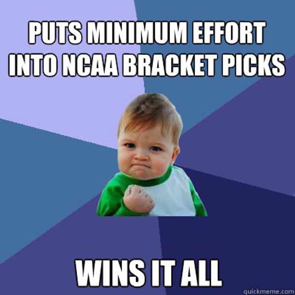 Easily the worst people to deal with at any point in the year, but more so during the tournament. Every year when it rolls around, teams start winning and you see random fans start coming out of no where. There's always "those people" who jump on the bandwagon of whoever is showing the most promise. They will use the excuse, "Oh, I've always liked *insert team name here*" and they'll amazingly switch every year.6. The Random Picks Bracketologist