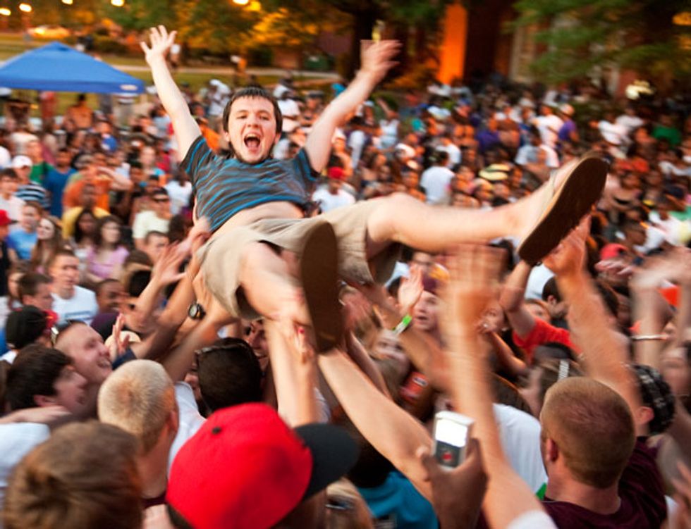 Don’t start clawing your way up to the front of the crowd. This makes it really difficult for people to support you, because that’s what they’re doing. The best way to crowd surf is roll on your back and let the people guide you. If you crawl, you’re just asking to get dropped.