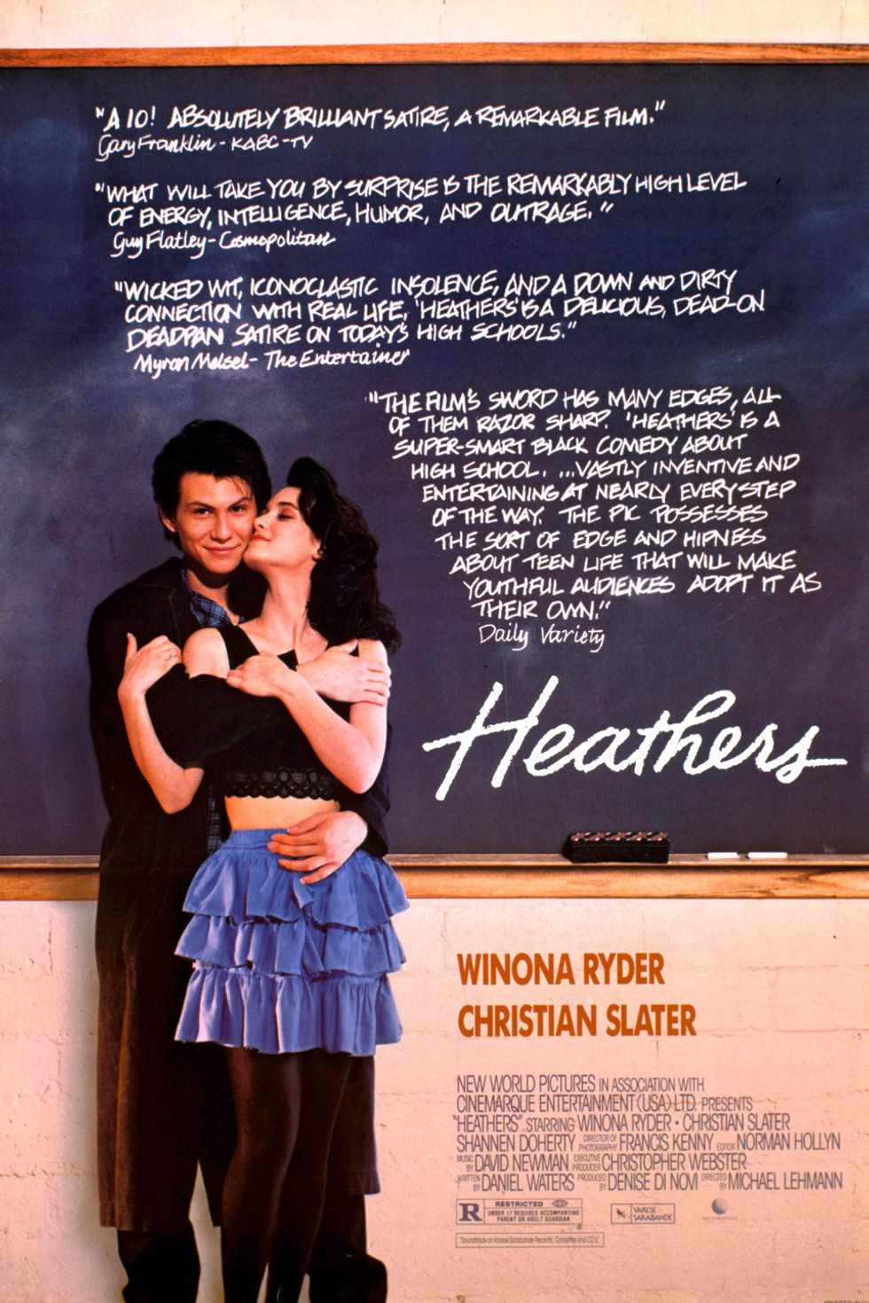The original "Mean Girls." There is Heather, Heather, and another Heather that wreck classic teenage havoc on anyone and everyone. Including non-Heather, Veronica, the integral heroine of the story. This witty satire becomes a cult classic because of the strong fans who enjoy a dark comedy that delves into the high school societal hierarchy.
