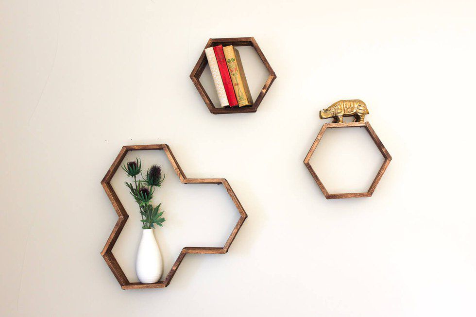 These professional-looking shelves are actually made with three mundane items: tacky glue, popsicle sticks, and wood stain! You could even paint them if you prefer more of a vibrant look. They're super lightweight, but strong, so they'll be able to support all of your favorite knick knacks.