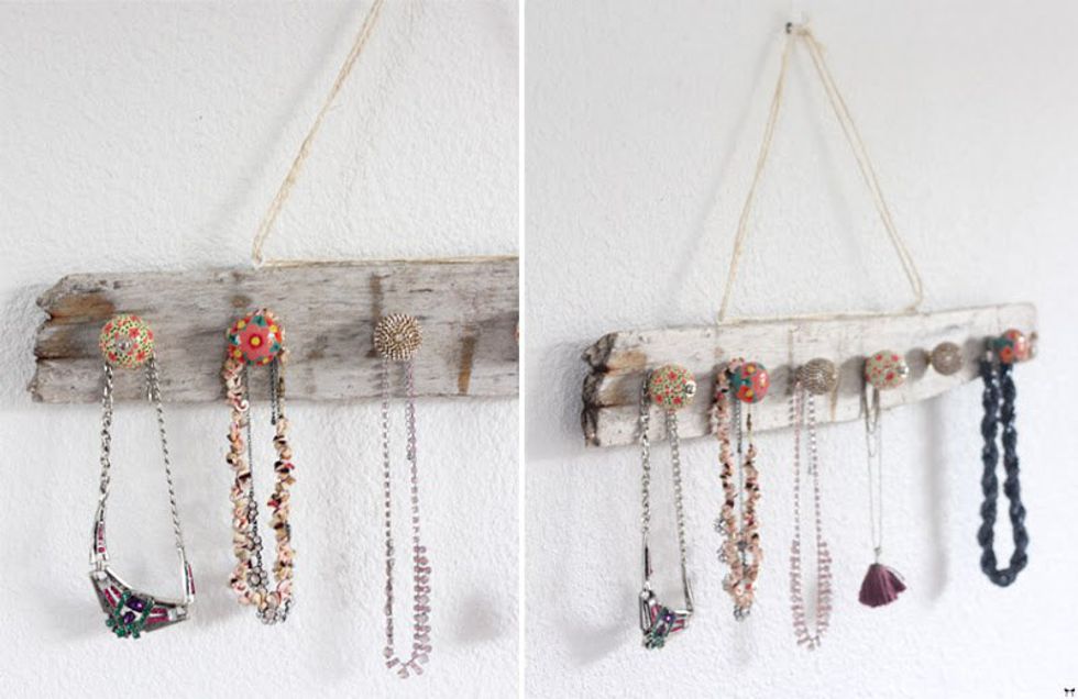 This is my personal favorite when it comes to decoration ideas! It's a really unique and versatile idea that will keep my necklaces from becoming a tangled glob and chains in my jewelry box. If you aren't much of a jewelry person, you could replace the knobs with hooks and use them for your keys!