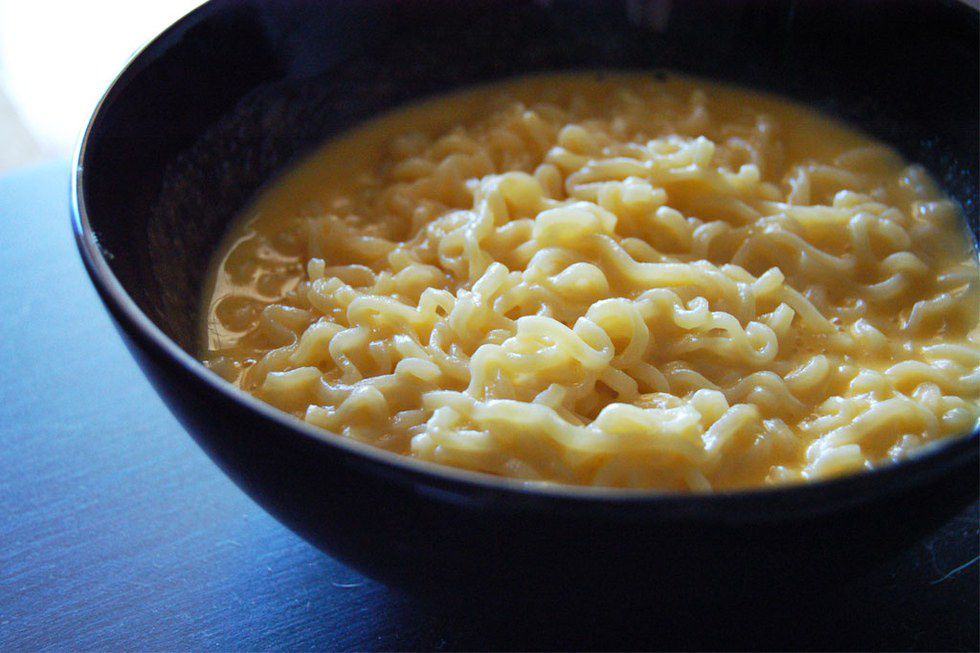 If this isn't a college recipe, I don't know what is. To start this recipe, you'll need to combine grated cheddar cheese with cornstarch (ask around, someone has to have it). Then, combine this mixture with milk in a small saucepan and cook on medium to low heat. While this is cooking, begin to boil the Ramen noodles. Once they have come to a boil, drain the noodles and combine them with the cheese mixture. Essentially, you'll end up with a hybrid of mac n' cheese and Ramen noodles. Yes please!