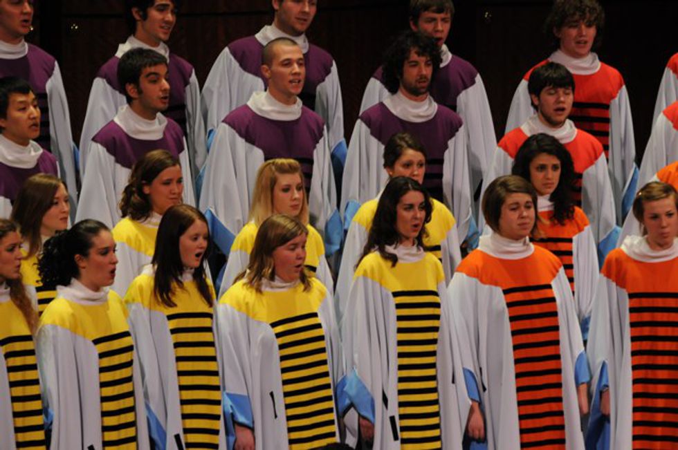 My friends always wonder why I am singing Christmas carols far too early. Well folks, here is your answer: being in choir means Christmas caroling. It happens every year whether you like it or not. You will be singing "God Rest Ye Merry Gentleman" as soon as the bell rings on the first day of classes. So smack that cheery smile on your face and get in the holiday spirit because you will be working on that music from August until performances come around in December.
