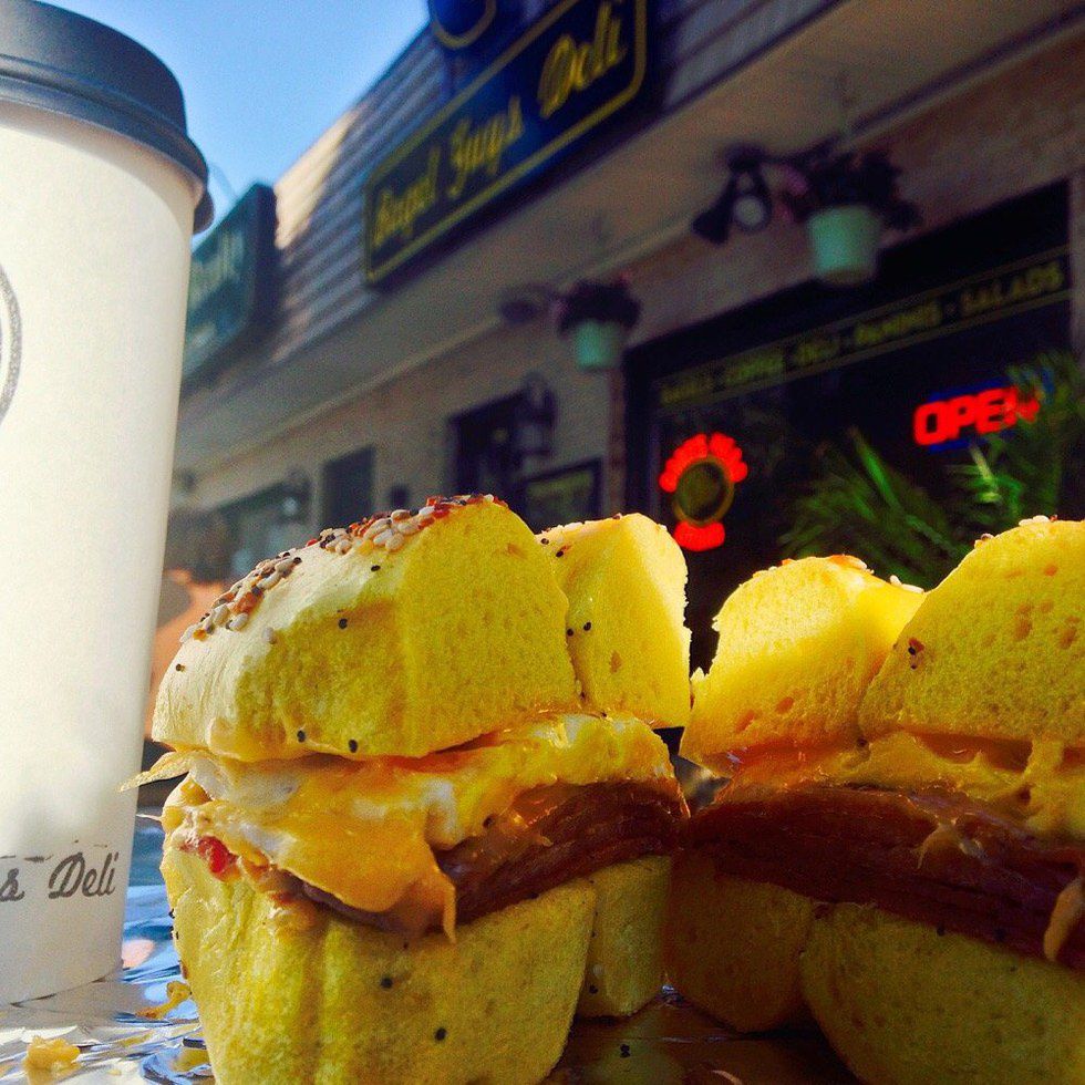 These bagels are really the best. They are soft and doughy without being too much to handle. The Bagel Guys make all of their bagels by hand and will put literally anything you want on them. Here's a tip too: they have home fries and bacon! Soft, hot home fries with crunchy, salty bacon with a bagel? Yes, please. Best of all, the $1 delivery minimum is only $10, so you really only need to convince one other person to get a bagel with you (and how hard can that be?). The only downfall: they close at 3 p.m. So you would have to get up before 2 p.m. to enjoy their bagels. Darn.
