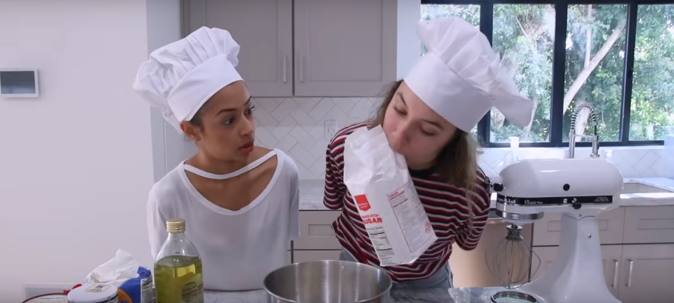 Liza and Kristen are like two peas in a pod. All the videos they make together are absolutely wonderful, but this one takes the cake (Get it? It is funny because they bake a cake.). There is no reason for them to be doing this and yet they do, which is what makes it funny. The ways that they decide to add the ingredients together is so interesting... weird? You will have to watch it and see just how creative they get.