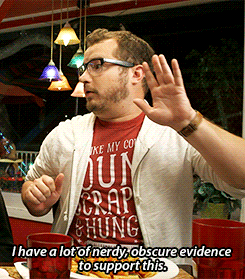 If you know anything about Cracked "After Hours" series, then you know this character from Dan O'Brien is basically me in male and fictional form. If you've got into a complicated argument about something you love and have spent far too much researching — this is the GIF to use as your opener.