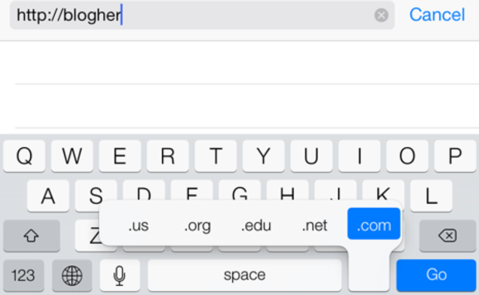 While on any screen with the keyboard open, simply push and holding down the "." will open up a series of pre-created URL endings.