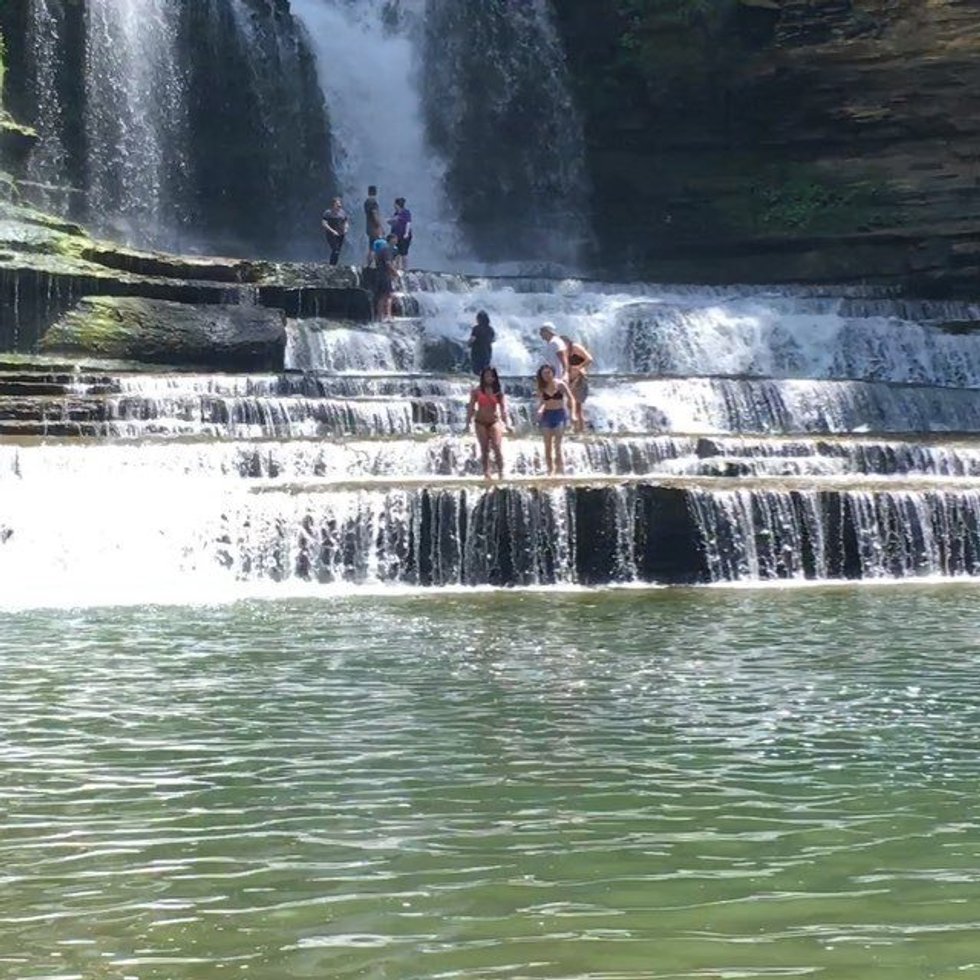 This place is about an hour and a half from Nashville and has many small little falls accompanied by one large swimming hole. The one large fall is in the shape of a horseshoe and stretches about 30-feet wide.