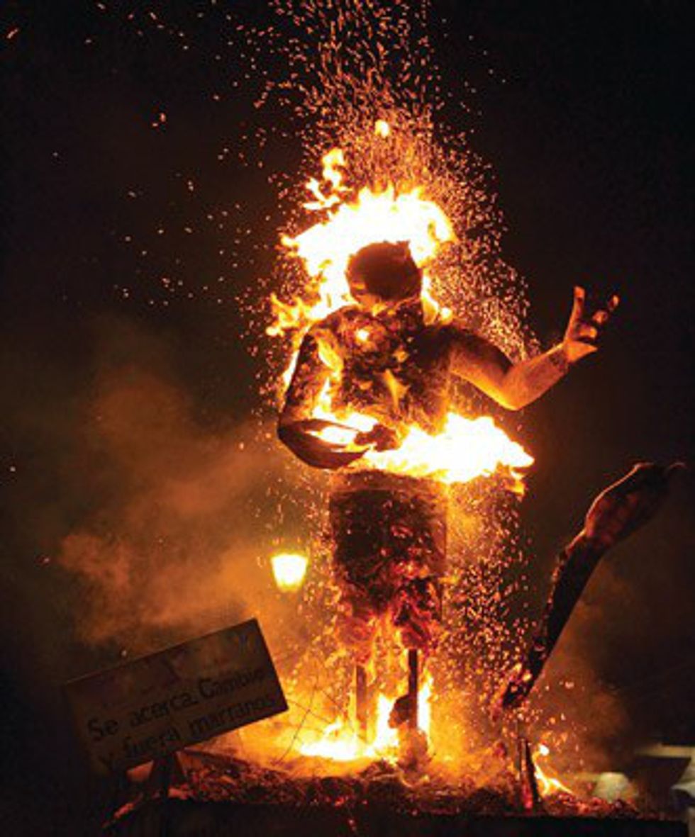 Around early December, Guatemalans sweep through their houses and collect trash to pile out in the street. The pile is topped with a replica statue of a devil and is then set on fire. It is only then that Christmas practices can begin. The ritual of "burning the Devil" is said to be symbolic of cleansing the environment from evil spirits and any negative energy towards the future celebrations and festivities.