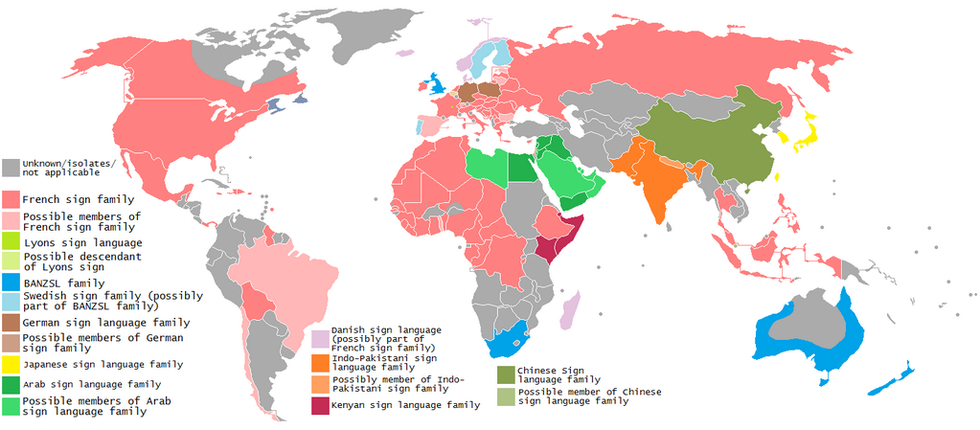 The United States and Canada are the only two countries who primarily use American Sign Language. French Sign Language was the basis for ASL and the two still share plenty of similarities, though they also differ in plenty of ways. However, according to The Ethnologue, there are around 130 recognized Deaf sign languages in the world, though there are also other undocumented sign languages out there too. Long story short, deaf people can't just go to any country and automatically communicate with other deaf people. Sign languages aren't universal. There is an International Sign Language, but it's not widely used outside of worldwide meetings, such as the World Federation of the Deaf Conference.