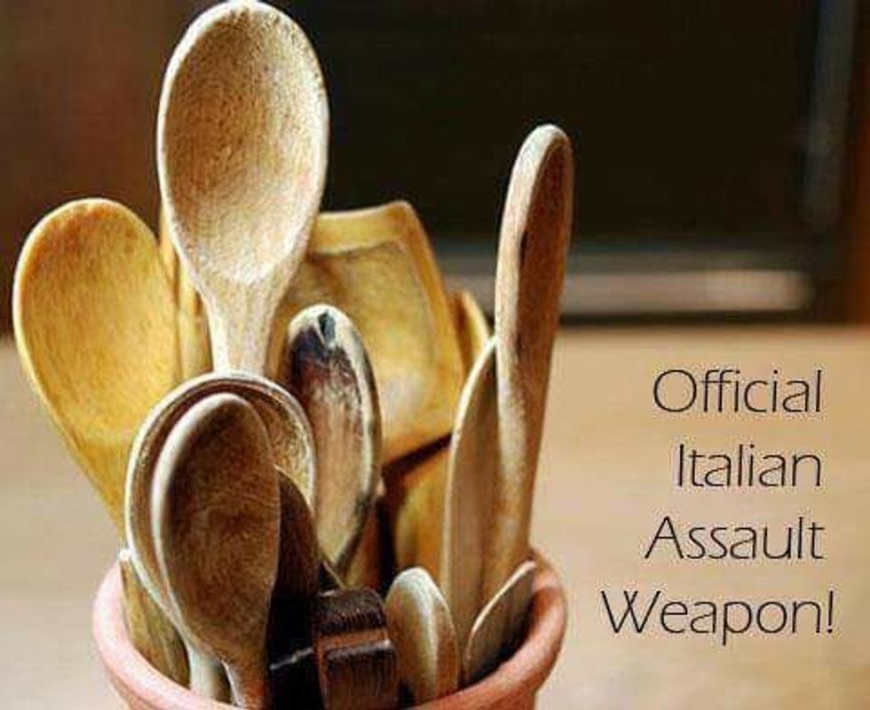 The wooden spoon is vital to every Italian family. It is a tool for stirring the macaroni and gravy. (Yes, it's macaroni and gravy not pasta and sauce.) But most importantly, it's the go-to tool to discipline misbehaving children. A true Italian will bolt at the sight of their parent holding the wooden spoon.