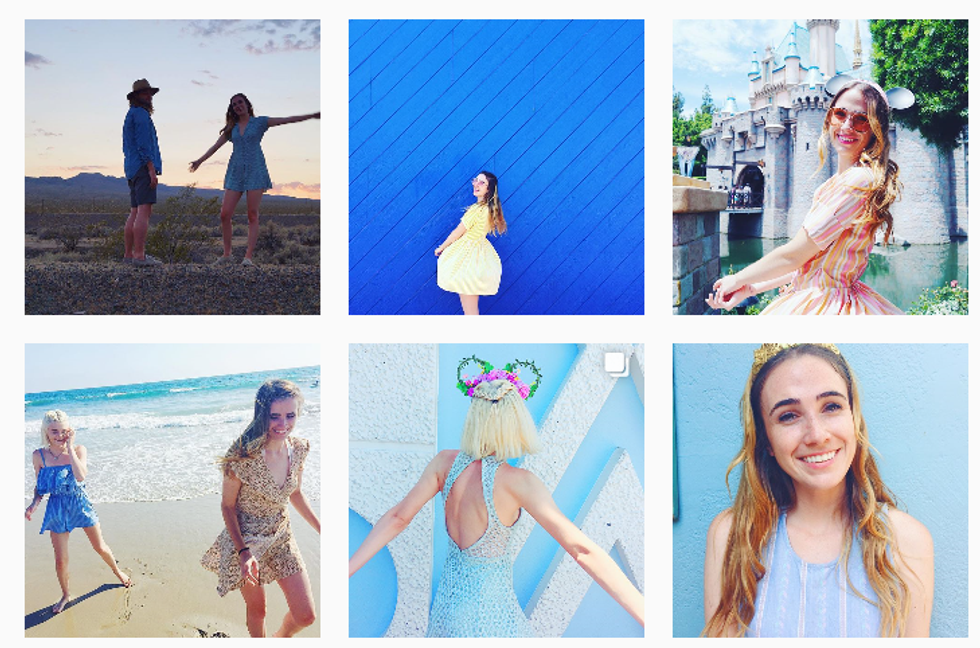 This is the account to follow for Disney aesthetics. From Disney Bound outfits to visiting Disney parks this account has it all. She keeps it simple with photo sets of three with similar sites. As shown in the picture, she has three photos in a row with her Guardians of the Galaxy themed Disney Bound. Follow her significant other, jameschatstv for his side of their adventures.