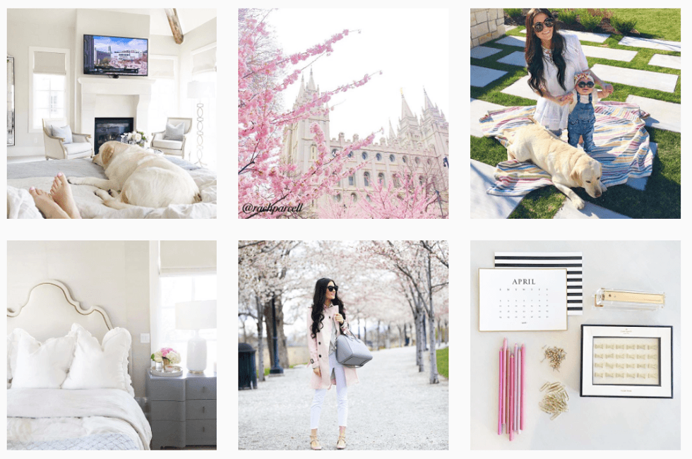 Pink Peonies is not only a blog, it is also a jewelry brand. Rachel uses her baby, husband and lab to create airy pictures. Her home in Utah makes for a great backdrop. Rachel’s photos are white-schemed with pops of blush. Fitting, right?