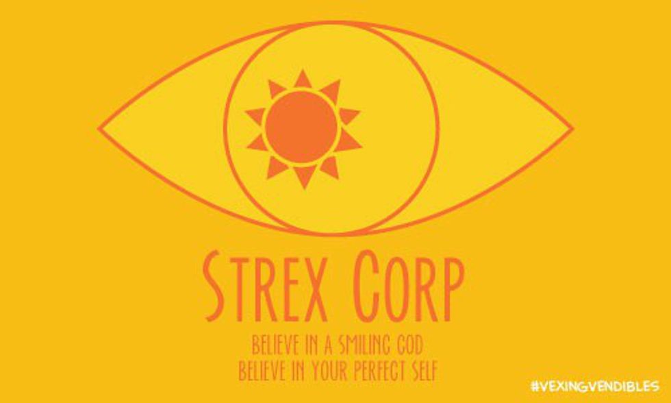 One story arc in the show is that of StrexCorp, a corporation that takes over everything, and Desert Bluffs, Night Vale's neighboring town. Desert Bluffs had been under StrexCorp's control for a long time, but we don't really know anything about the corporation until it makes it to Night Vale as well. For a while Lauren, the vice president of StrexCorp, and Kevin, the radio host of Desert Bluff's community radio, take over Night Vale, resulting in several episodes that aren't about Night Vale, per se, but about the Greater Desert Bluffs Metropolitan Area. Kevin and Lauren are constantly upbeat, even about things that they shouldn't be happy about, and everyone in Night Vale is expected to be the same. However, this takes away everything that makes Night Vale what it is -- the dark and creepy are an integral part of the town.