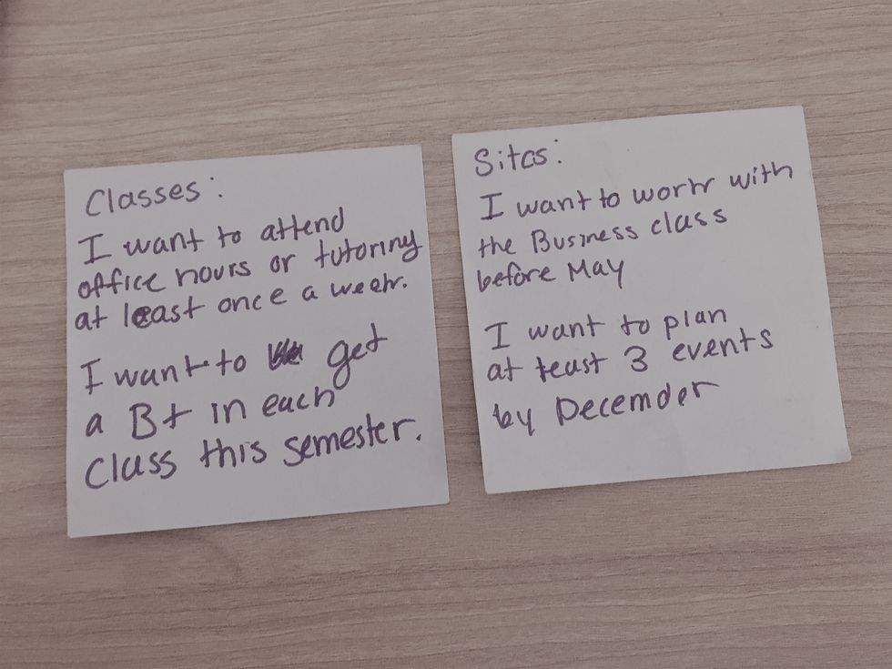 At the beginning of the each semester, we all set goals for our sites as well as our academic life. It's a great reminder to challenge yourself and get the most out of your time at your placement. I normally write them out on a Post-It and place it on my desk so I look at it every day.