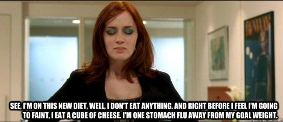 Emily starved herself down so she could look amazing for her trip to Paris with Miranda. Miranda then kicks her off the trip and she gets hit by a cab realizing that carbs are not so bad after all.