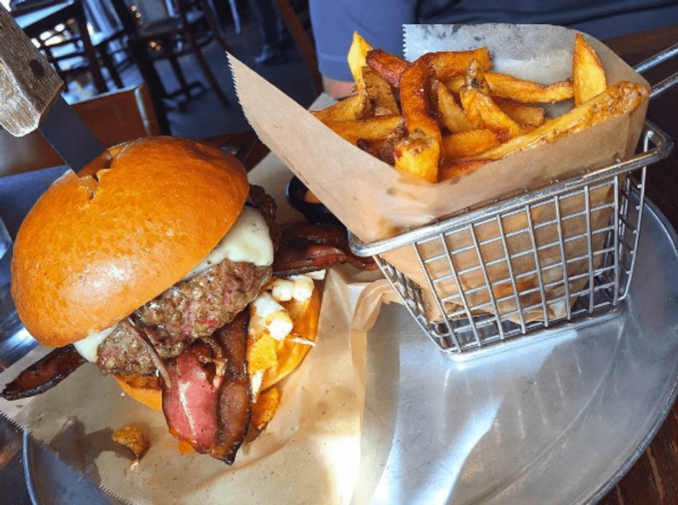 From the outside you might not even realize the amazingness this restaurant holds. With many burger options, some chicken and even some vegan there is something for everyone. Now, this is definitely not the place for a health freak. The famous Kitchen Sink Burger, as the name states, has a little bit of everything, bacon, pepper jack cheese, short ribs, mac and cheese, crumbled bbq chips on a brioche bun. How could you read that and not order it? Next on my list from this menu will be the Yard Bird Chicken and Waffle Sandwich.
